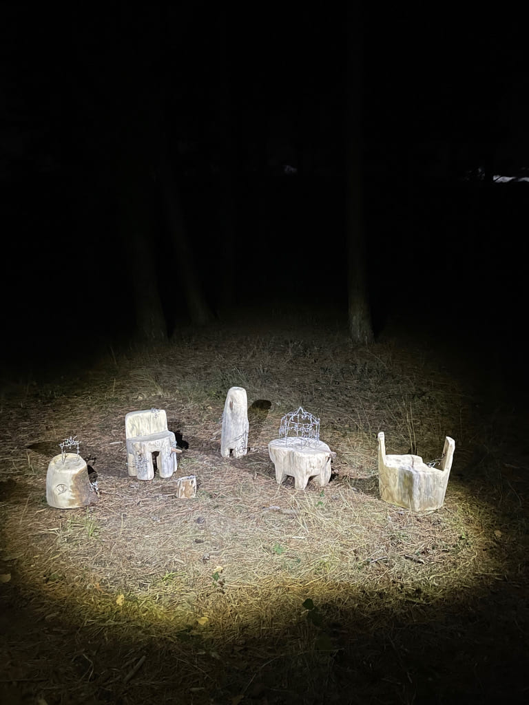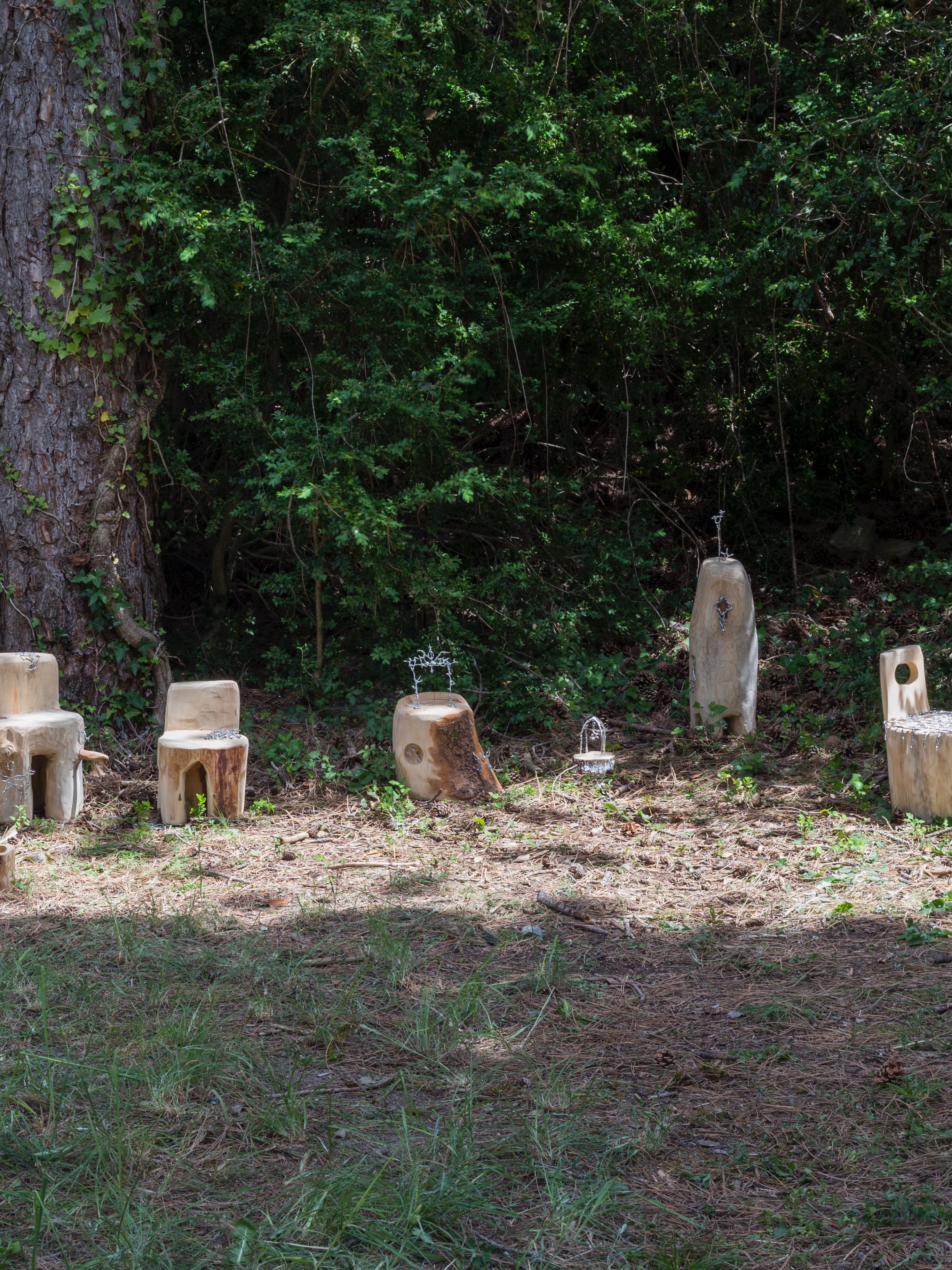 As part of a two week Residency Program, a series of pieces mixing materials and its physical approach to them, were carved into wood trunks and inhabited with tin casted and solder structures and little creatures.