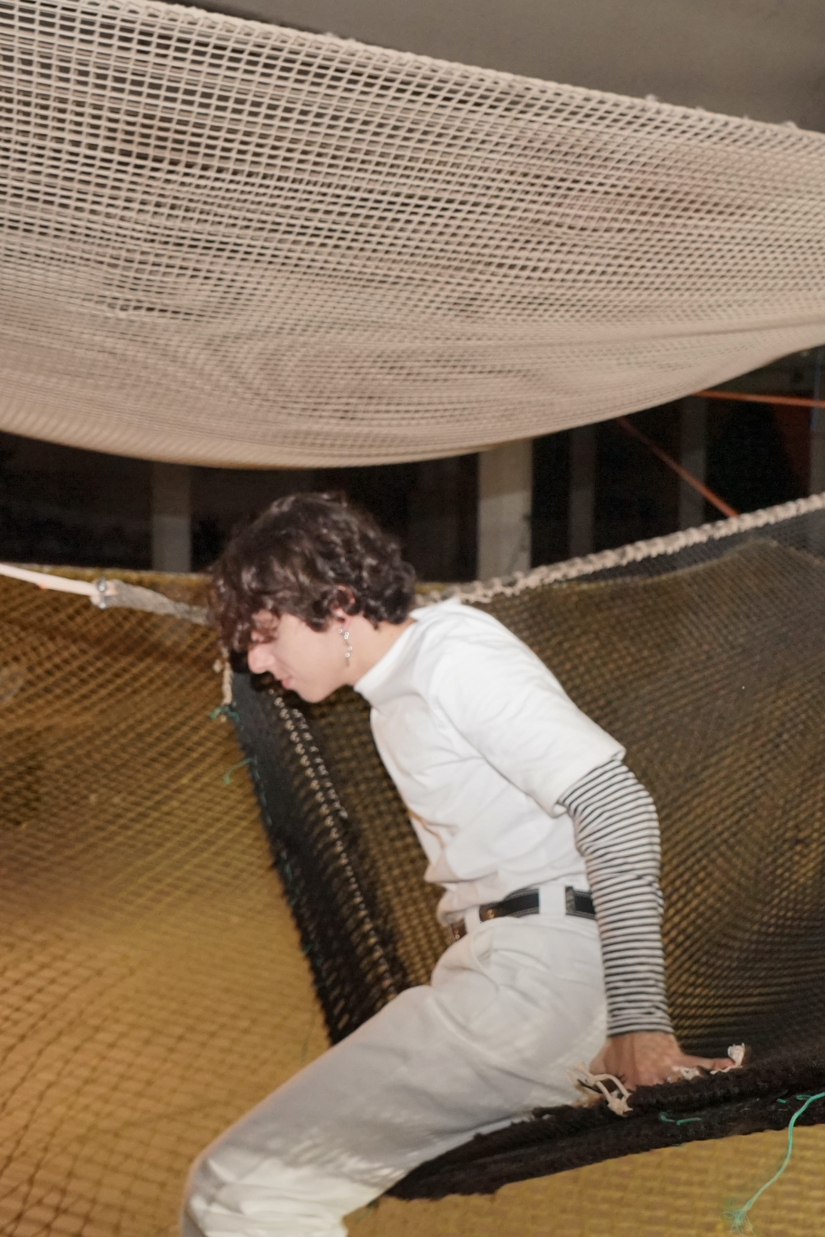 Redario arises from the idea of constructing a space outside of productive logics, while in the process traditional handmade productive activities are brought to light as a design tool. The project mobilises the contact of a network of local practices. Through the fishermen’s guilds of the coastal towns near Alicante, the main material is obtained: old fishing nets. This material is no longer useful for what it was created for, such as the space of the old Tobacco Factory where the redario is built, but nevertheless useful for us.